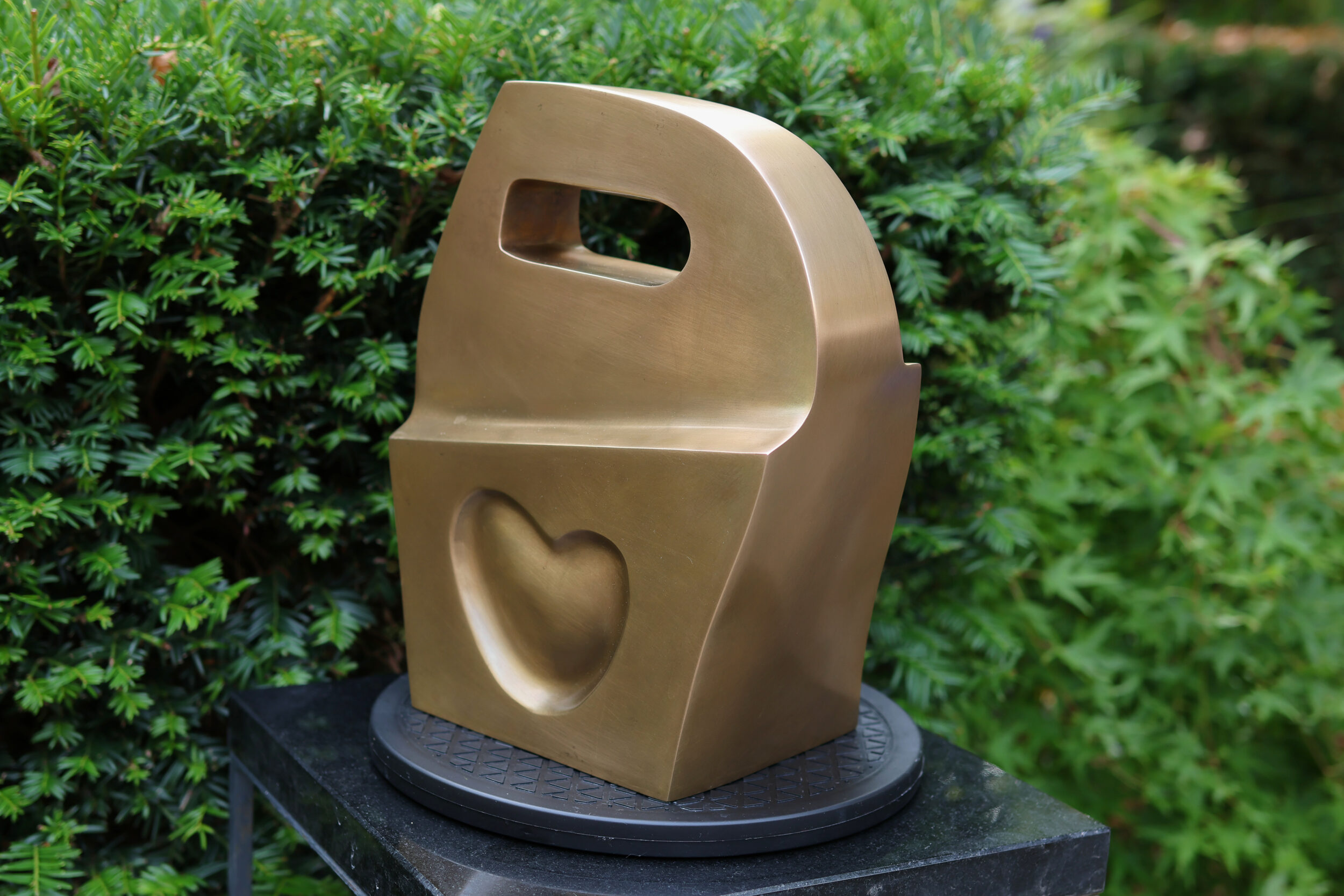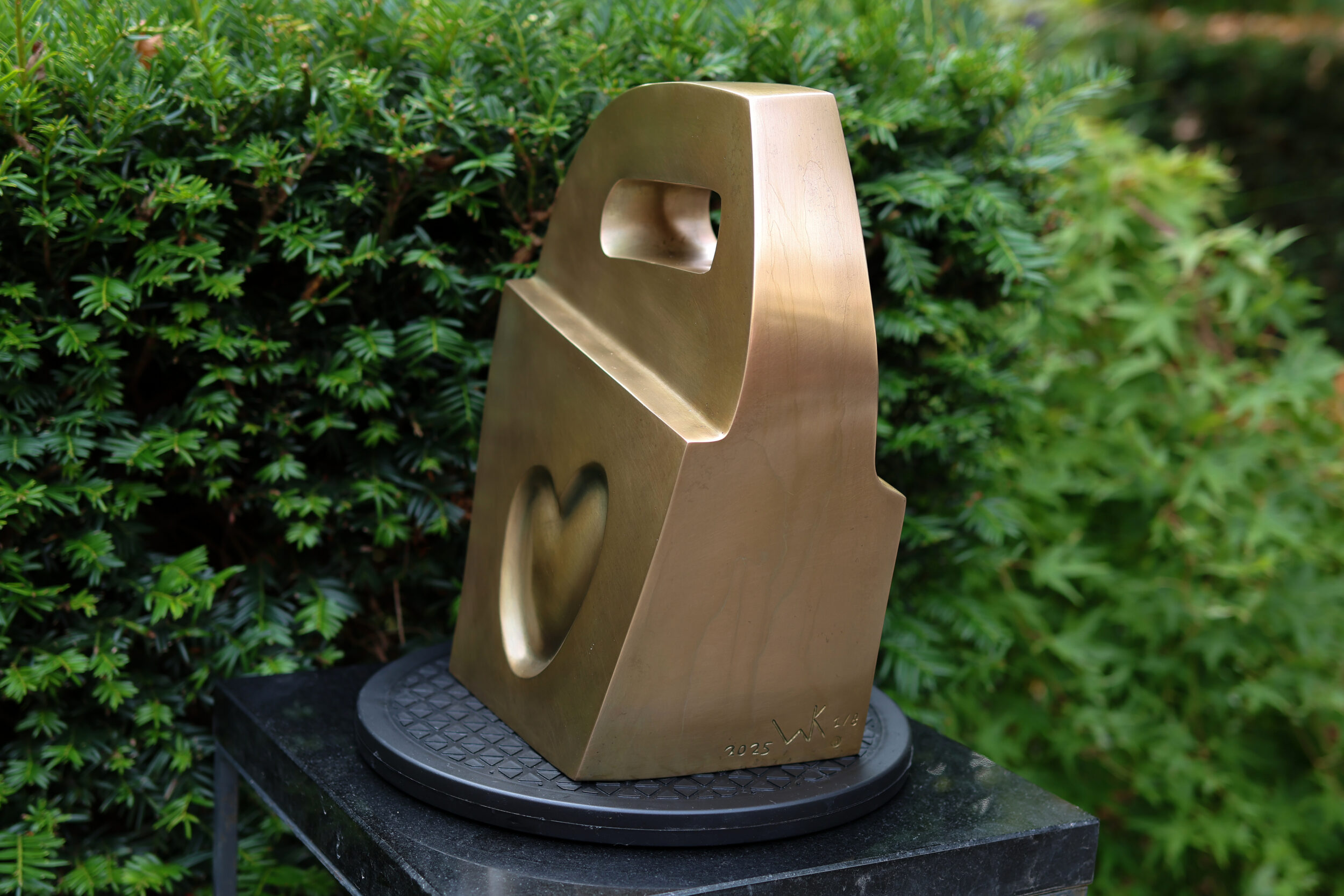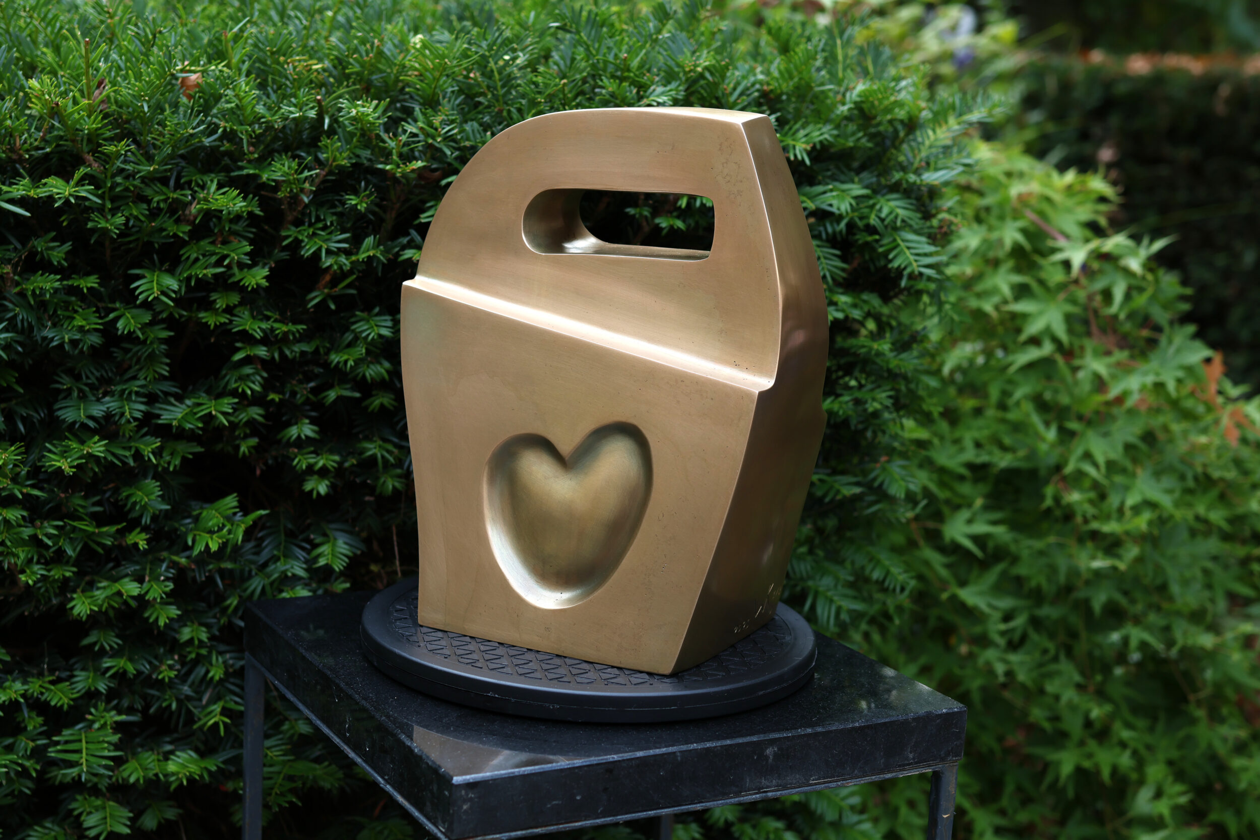 H’artbag in brons brons met goud patina. Patina door Theo van den Heuvel Atelier80, h33cm plus 2-4cm grondvlak graniet 1234567