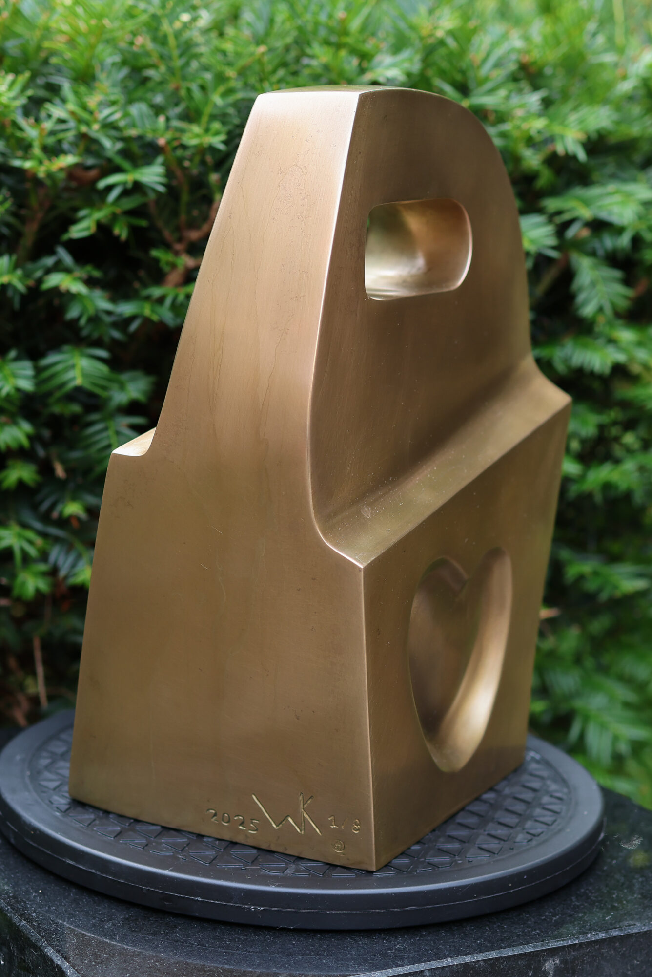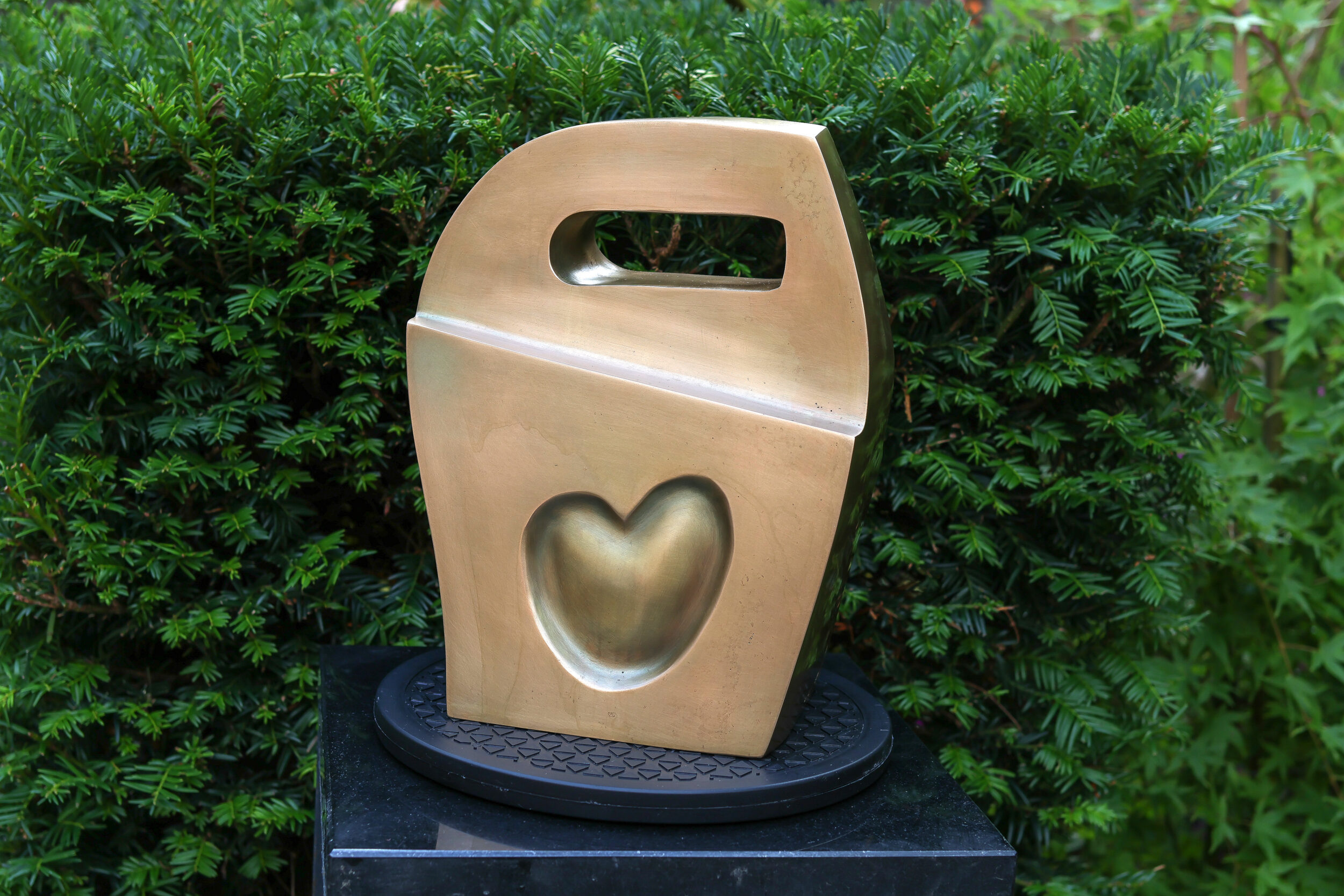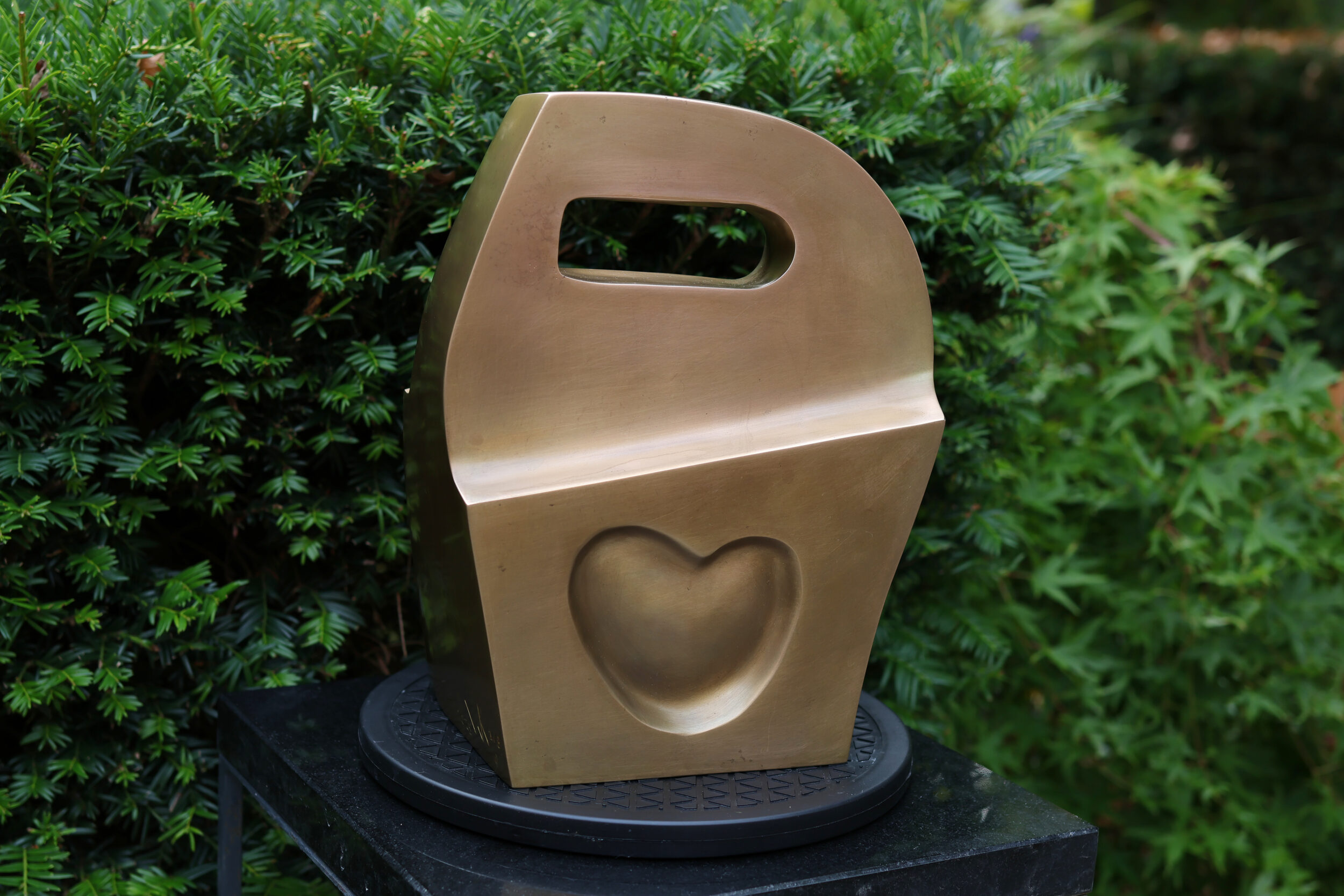 H’artbag in brons brons met goud patina. Patina door Theo van den Heuvel Atelier80, h33cm plus 2-4cm grondvlak graniet 1234567